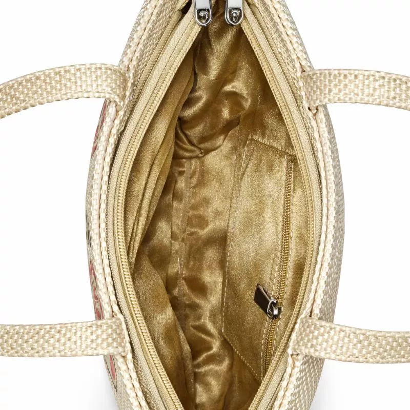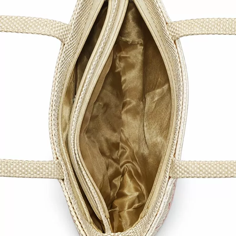 Features an all-over floral embroidered design highlighted by an elegant pastel colour palette in pink, peach, and mint tones. Fine bead outlining adds depth and texture, creating a refined handcrafted finish. Designed in a spacious rectangular silhouette with comfortable shoulder-length handles. Lightweight and easy to carry.